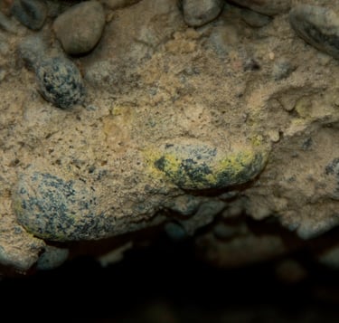The geological and geochemical data that we have collected from the pits indicate that the mineralized layer of sediments is located at depth from 0.1 to 1.9 m, but usually at less than 1 m. The thickness of that layer is often near 1 m, and the concentrations of U commonly vary between 70 and 200 g/t; although the maximum concentration obtained was of 5400 g/t U. With the current data we count with, it was estimated that the mineralized sediments with more than 70 g/t U, cover an area of approximately 2500 ha in plan view.