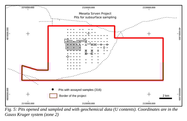Up to know, we have records of 316 of those pits, including a general description of the mineralized sediments and their contents of uranium, obtained in laboratory.